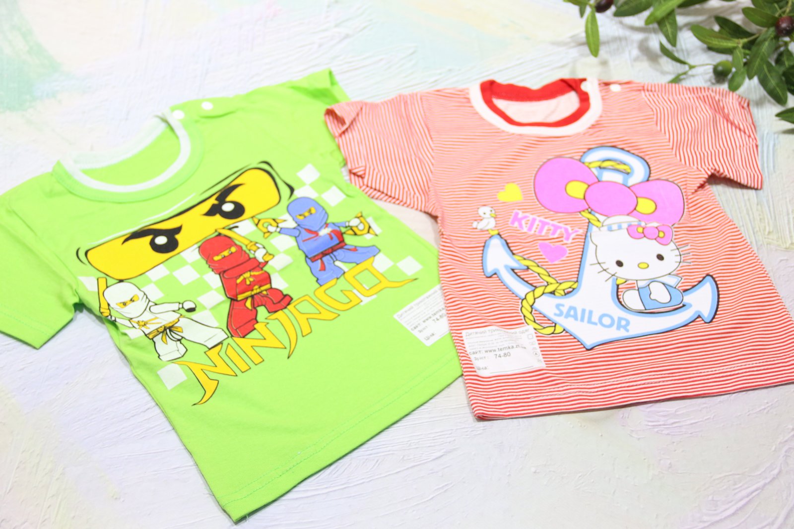“Футболка “”кнопка”” з накатом р.26 кулір 1338 салатовий, червоний”