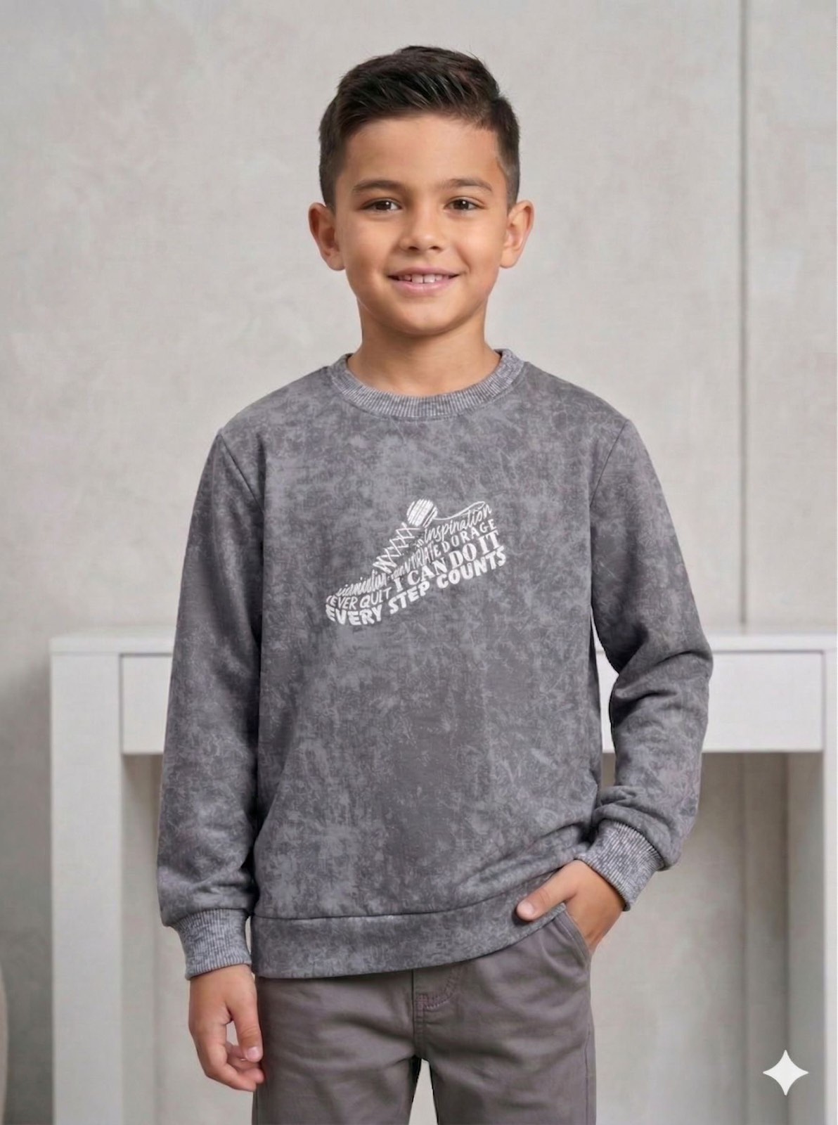Джемпер «Варка» сіри🧵 2.нитка/петля -преміальна, бавовняна, мʼяка, дуже приємна, крутезна тканина✅ трендовий -ефект варки, декоровано стильовим принтом, класичний крій, горловина та манжети з рубчика👍📏 116, 122, 128, 134