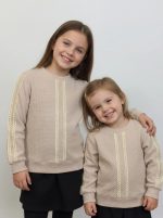 Джемпер “Мереживо”🌈 бежевий 🧵Waffle -преміальна, турецька тканина, структурного плетіння нитки у вигляді вафельки, 95%бавовна 5%лайкра, тому м’яка, приємна, добре тягнеться та не втрачає форму ✅ гарна, стильна моделька, з трендовим мереживом, підійде як на свято так і на кожен день 📏 92,98,104,110