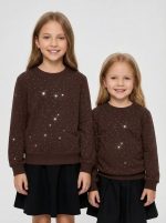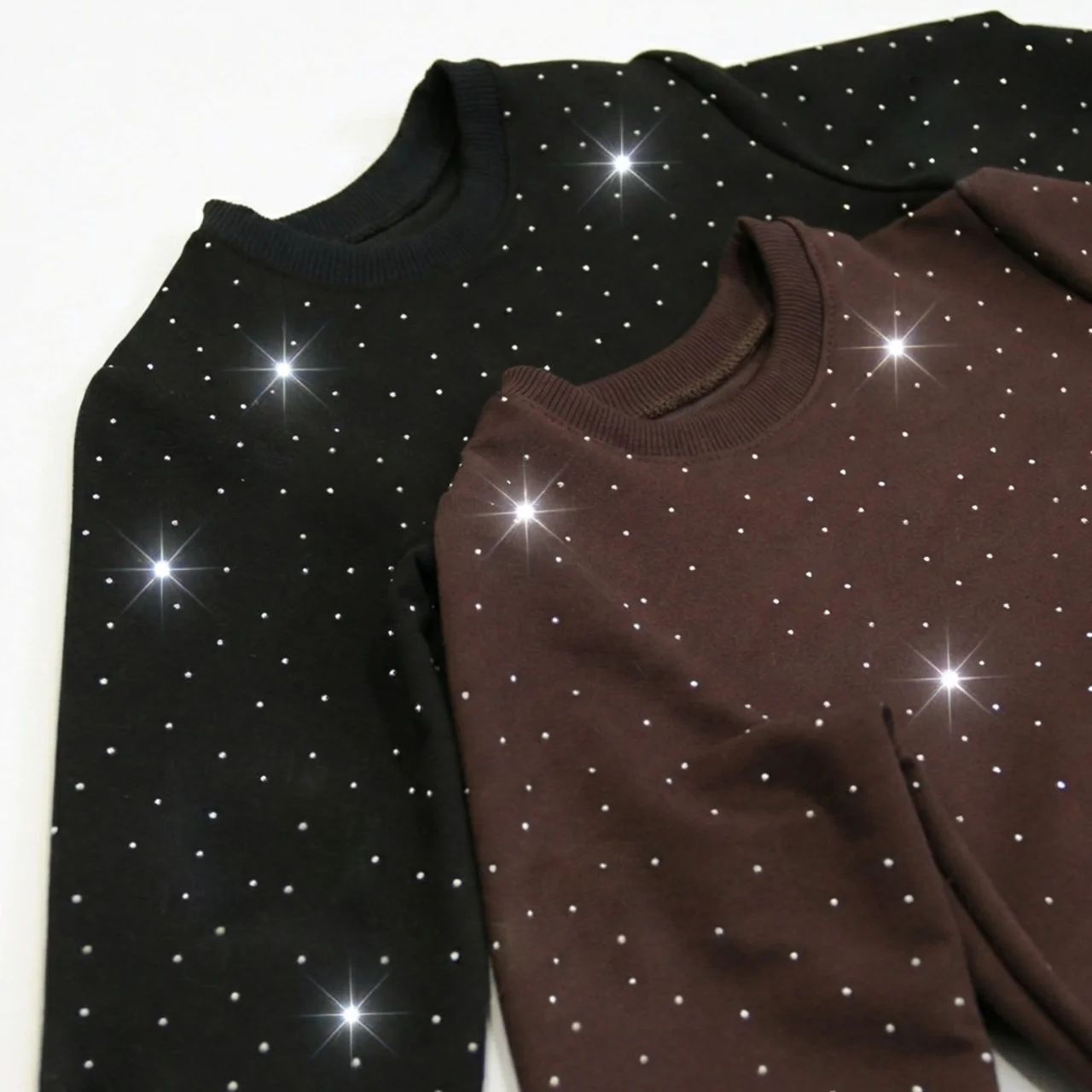 Джемпер “Стрази” шоколад 2.нитка/пеньє -люксова, турецька тканина з фабричним нанесенням стразів ✅ крутезна моделька, горловина і манжети з рубчика, дуже гарно та ніжно виблискують стрази -тренд сезону, ідеально стилізуються в костюми з нашими палаццо 116,122,128,134