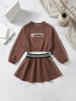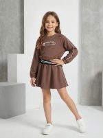 Костюм “Кант” мокко 2.нитка -преміальна, перевірена, турецька тканина ✅ трендовий реглан “кроп-топ” з термо -накатом міу-міу, по низу на резинці з фіксатором, на рукавах та по спідничці стильові канти 116,122,128,134