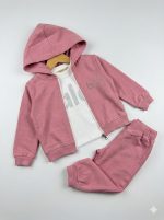 Костюм 3ка арт.1553🌈 бузковий, рожева пудра✅ лонгслів з бавовняного інтерлока✅ кофтинка та штани з бавовняної двонитки, кофтинку декоровано стразами✅ гарний, якісний костюм для маленьких модниць)🇹🇷 вир-во турецької фабрики 📏 9,12,18,24 міс