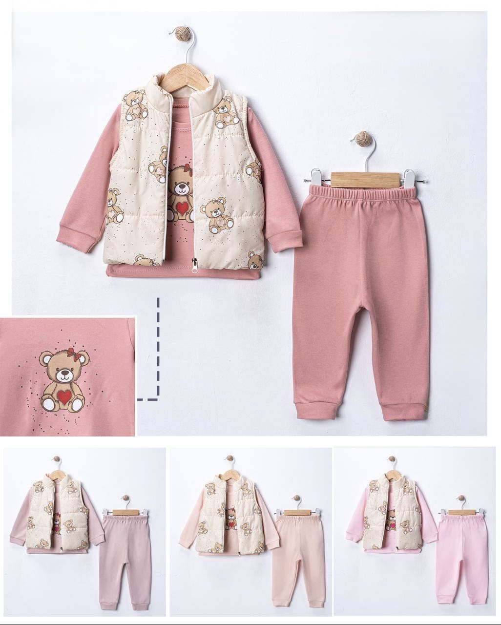 Костюм 3ка арт.25455🌈 рожевий, пудровий ✅ лонгслів і штани з бавовняного інтерлока ✅ жилетка з плащівки на бавовняній підкладці✅ крутезний, зручний костюм для маленьких модниць)🇹🇷 вир-во турецької фабрики 📏 9,12,18,24 міс