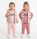 Костюм 3ка арт.25424 рожевий, пудровий ✅ лонгслів і штани з бавовняного інтерлока ✅ жилетка з плащівки на бавовняній підкладці✅ крутезний костюм для маленьких модниць) турецьке вир-во 9,12,18,24 міс
