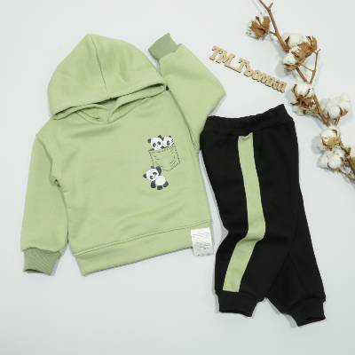 Костюм “Панди” Розміри з 74 до 98 Тканина: тринитка/начос •якісна турецька тринитка з начосом, не тріщить, не кошлатиться; •худі з капюшоном, подовжена моделька в стилі oversize; •штани з карманами та вставками-лампасами в тон худі; •тепла, зручна моделька унісекс; •повномірні розміри; •власне в-во Розміри: 74,80,86,92,98