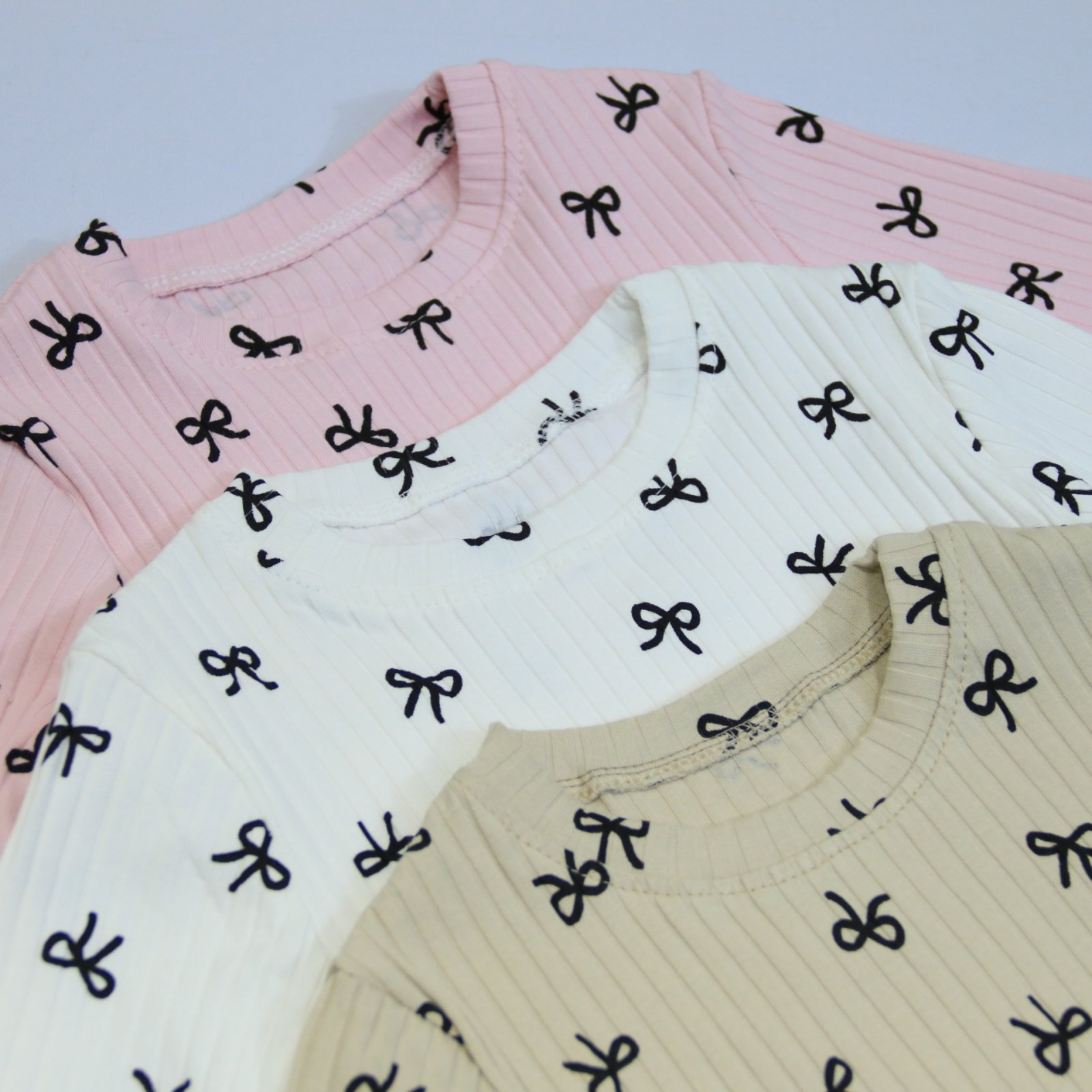 Лонгслів “Бантики” 🎀🌈  молочний 🧵кашкорсе -преміальна турецька тканина, ребристого плетіння нитки в широкий рубчик, гарно тягнеться, не деформується, 95%бавовна 5%лайкра✅ крутезна, ніжна моделька, в трендові бантики, гарно оброблена горловина, ідеальні лекала📏 116,122,128,134