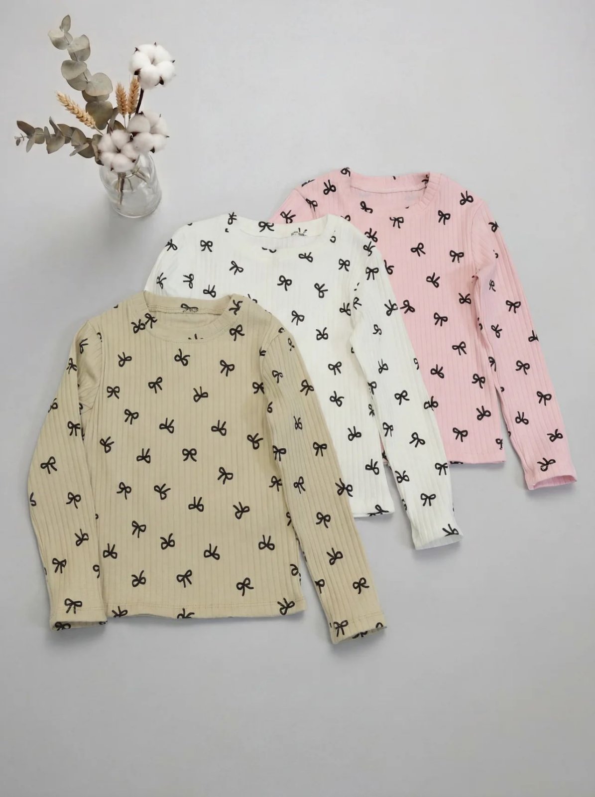 Лонгслів “Бантики” рожевий кашкорсе -преміальна турецька тканина, ребристого плетіння нитки в широкий рубчик, гарно тягнеться, не деформується, 95%бавовна 5%лайкра✅ крутезна, ніжна моделька, в трендові бантики, гарно оброблена горловина, ідеальні лекала 92,98,104,110