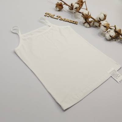 Майка біла Розміри з 134 до 158 Тканина: кулір/пеньє 95%бавовна, 5%еластан •преміальна, натуральна тканина з еластаном; •класична, зручна моделька для дівчаток ; •повномірні розміри; Розміри 134,140,146,152,158