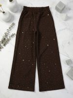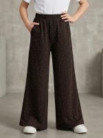 Палаццо “Стрази” шоколад 🧵 2.нитка/пеньє -люксова, турецька тканина з фабричним нанесенням стразів ✅ стрази -тренд сезону, крутезна моделька, з широким поясом, з карманами, з гарним кльошем від бедра, ідеально стилізуються в костюми з нашими джемперами📏 140,146,152,158