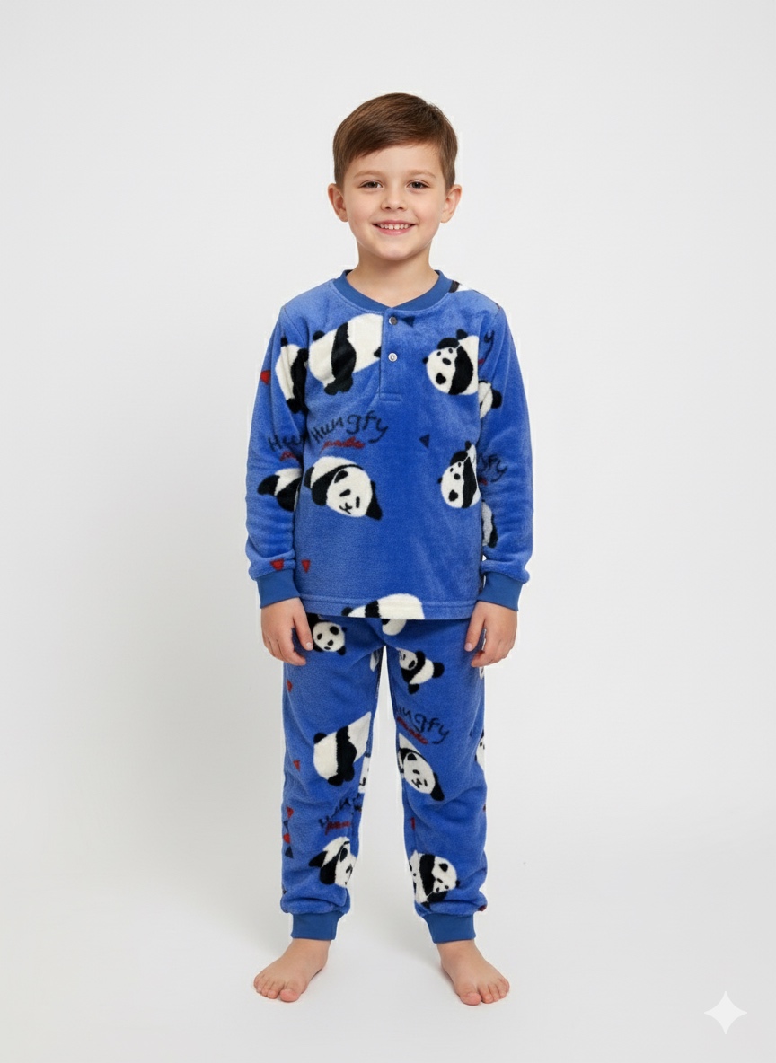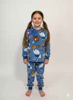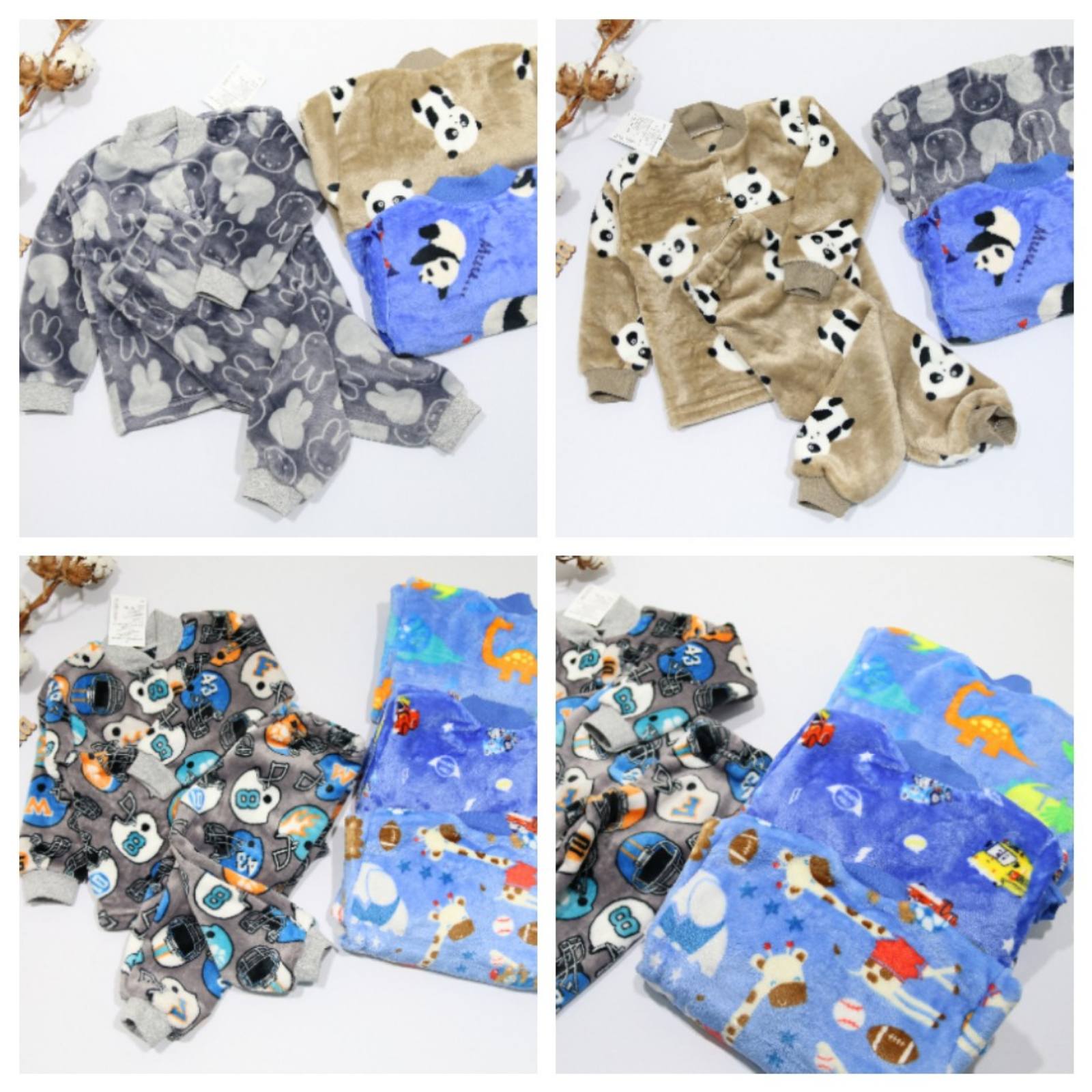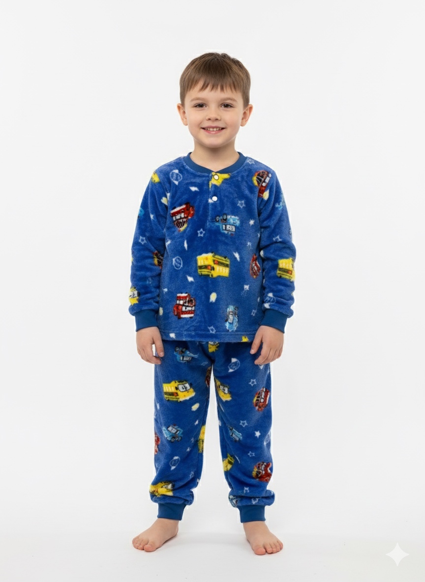 Піжама “Махра” Розміри з 98 до 122 Тканина: велсофт/махра Малюнки: діно, машинки, футбол, жирафки •тепла піжама на двох кнопках; •манжети з м’якої рібани; •розміри трішки маломірять;